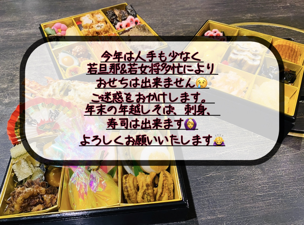 若旦那、若女将多忙の為、今年のおせちは出来ません。